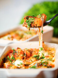 To reheat, you can either defrost for the best results or cook from frozen. Wrap them in foil, leaving some air in the foil tent and drop them in the oven at 150-160°C or 300-320°F and cook for either 10-12 minutes or 20-25 minutes.