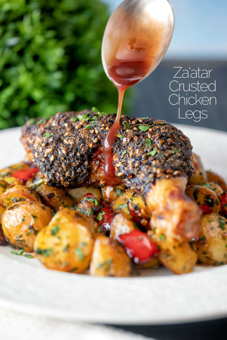 These za'atar crusted roast chicken legs are a real treat, that are stupidly simple to cook and taste wonderful.